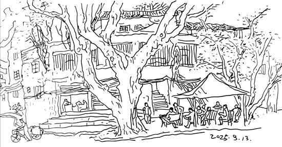 象岗山上读报人 □陈侗