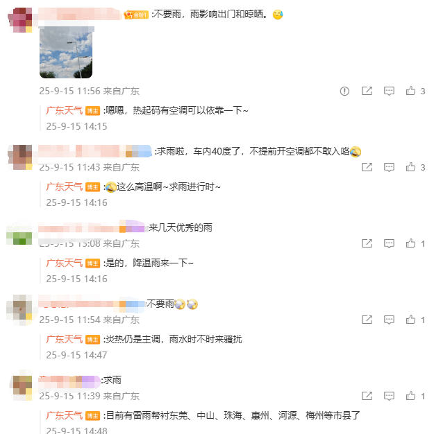近日来,广东一直持续高温,网友们好像分成了“两派”,有人希望能下雨,缓解一下高温;也有人则更希望能够不下雨,以免影响出门。