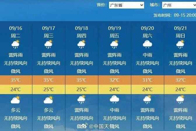 不过,在冷空气到来前,南方高温依然强盛,高温范围还会达到近期巅峰。预计,16-18日,广东中北部晴到多云,天气炎热,局部有(雷)阵雨,南部市县(雷)阵雨增多,局部雨势大。