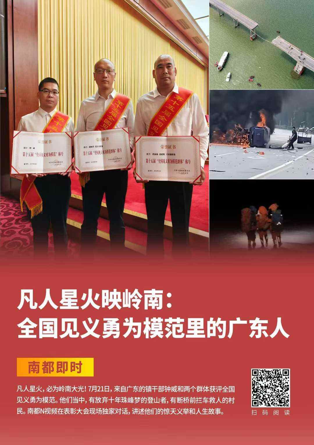 他提到,近期,广东多地出现特大暴雨,大家已经看到更多的见义勇为英雄的新闻。