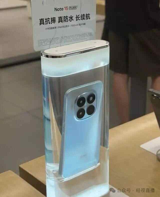 9月15日,有网友发帖称在小米手机一门店内看到展示台上的透明容器内灌满水,小米 Note15Pro完全浸泡其中,但细心网友发现展示机摄像头中有不少细微气泡,质疑本应展示防水效果的手机却内部进水,觉得有些离谱。