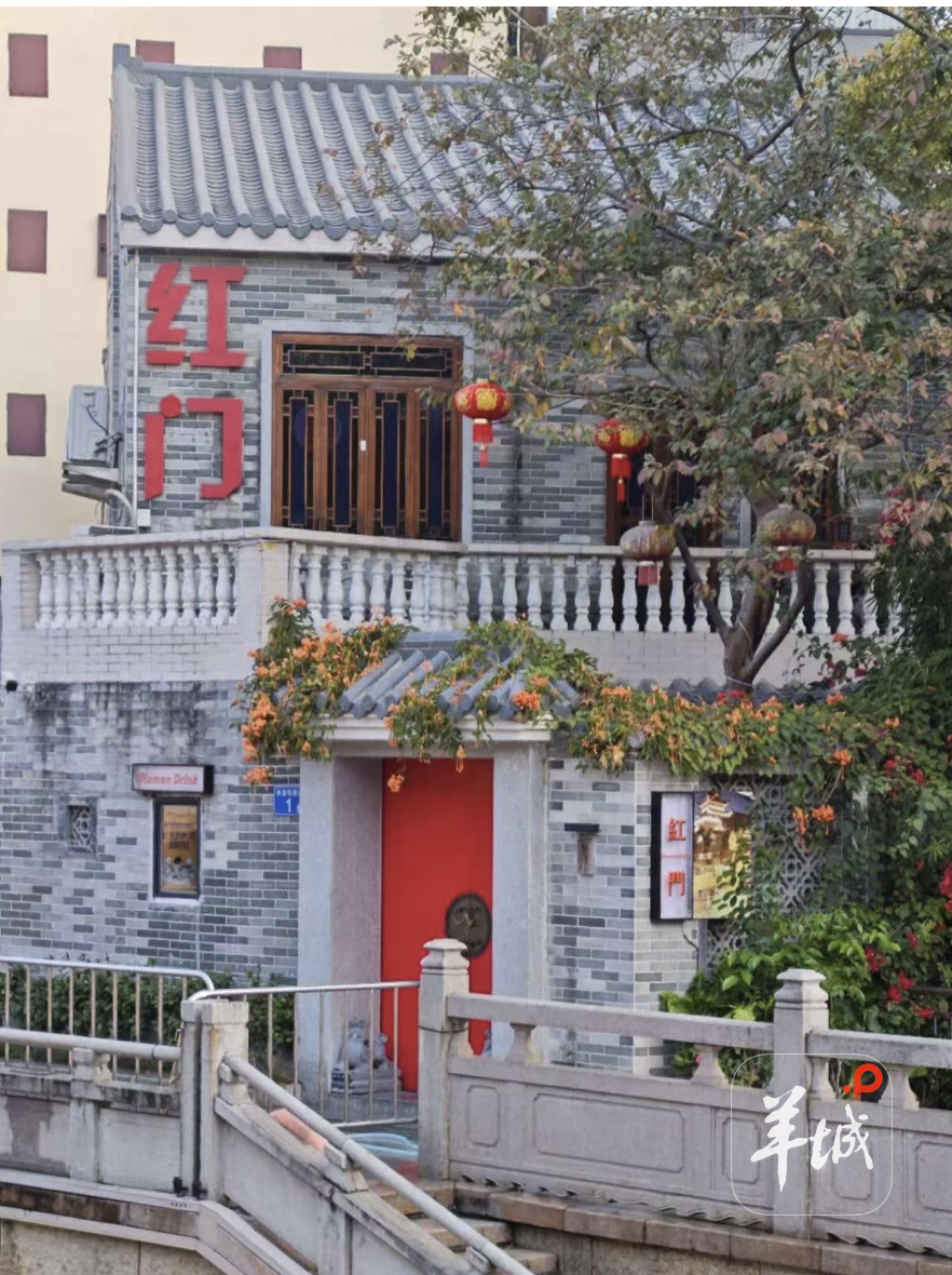 充满粤剧粤曲元素的红门咖啡馆是一座与粤剧艺术博物馆隔涌相望的独栋小别墅。内有粤剧主题书画、八仙桌椅、满洲窗,还有店家珍藏的超百款微缩场景和车模型。