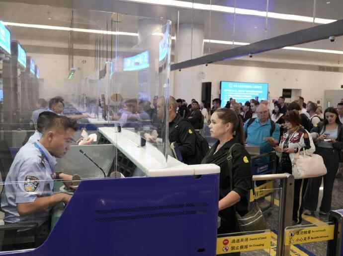 9月15日凌晨2时许,乘坐HZ5430航班入境的俄罗斯籍旅客RASPOPIN成为该口岸首位持俄罗斯普通护照办理免签入境手续的人员,他表示:“免签后来中国旅游更方便了,感觉非常棒。”