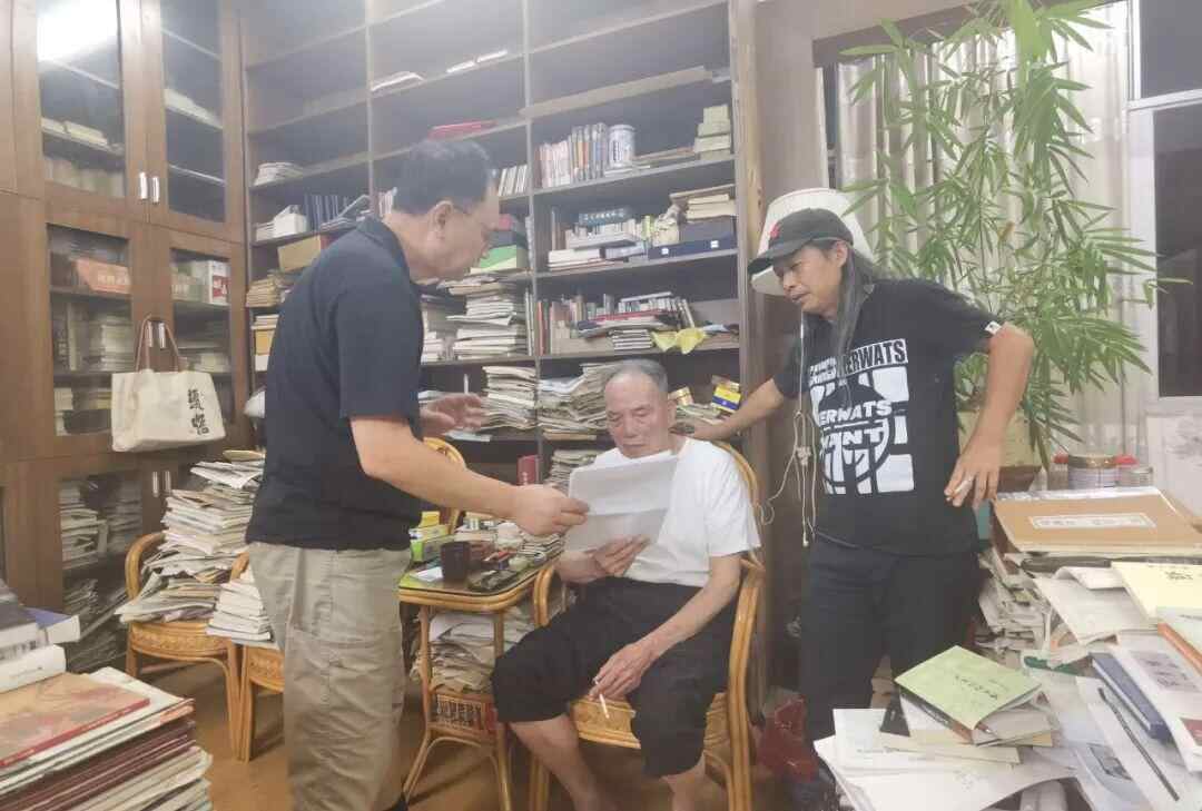 又一次突袭。晚上九点,颜长江突然说:要不要去见见刘国玉先生?话音刚落,就到了翁山诗书画院门下。我给刘先生打电话:刘老师在吗?刘老师说在。我说那我们上来方便吗。刘老师说方便!便收了电话。感觉到老人家是兴奋的。上来,见面。见到颜长江,握手,高兴;见到邓勃,握手,高兴;见到林洪浩,握手,高兴。刘先生亲自沏茶。