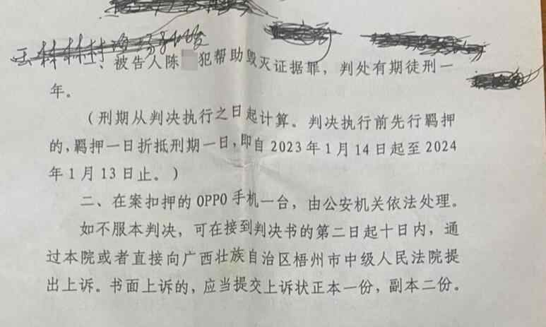最后,陈某因犯帮助毁灭证据罪,被龙圩区人民法院判处有期徒刑一年。陈某告诉红星新闻记者,除他因此被关一年外,妹妹陈某丽及大嫂李某(陈克政的妻子)也因此被关了近一年时间。红星新闻欲就此采访李某,其通过陈某转告婉拒了记者采访。
