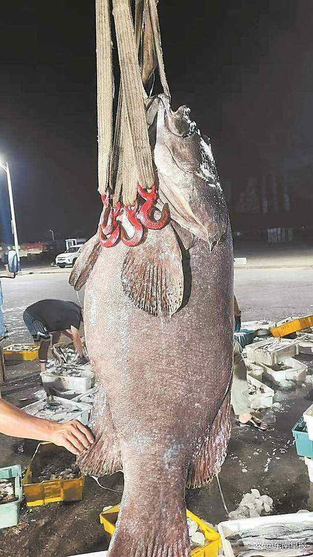 “我赶紧把水手们喊过来,最终,在船上9个人的努力下,巨大的石斑鱼被捕捞上船并马上放进船上的冰仓里。”黄昆强说,他19岁开始出海捕鱼,干这行已经20多年,他和船上的水手们都是第一次见到和捕到这么大的石斑鱼,大家都很激动、很开心。