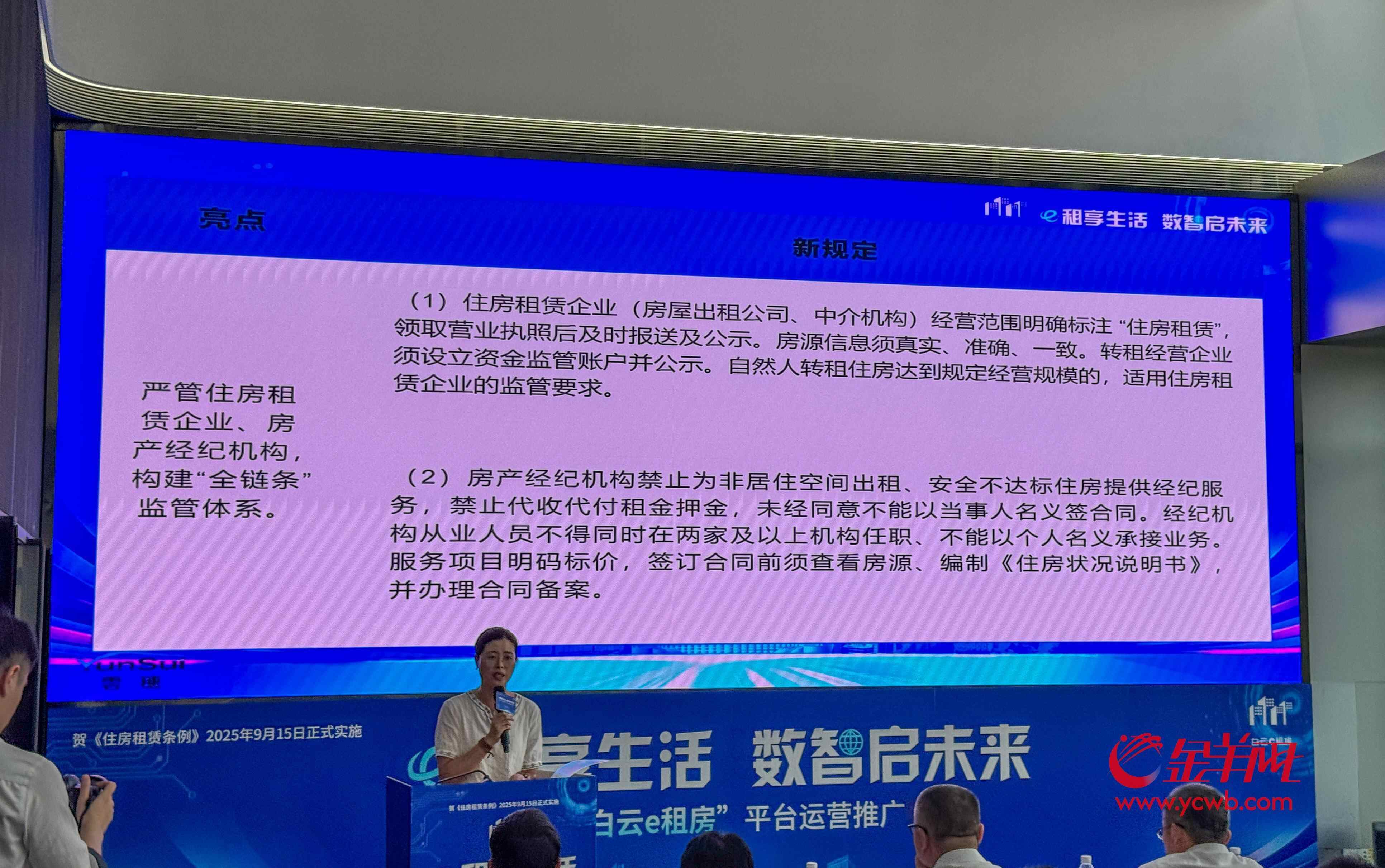 9月15日下午,在《住房租赁条例》正式实施的首日,广州市白云区出租屋租赁平台“白云e租房”运营推广大会在白云区智慧城市展厅举办,白云区多位房东、租客、品牌公寓、国企、政府等代表共同了解《住房租赁条例》的最新规定,推广“普惠民+促监管+智生活”出租屋治理新模式。