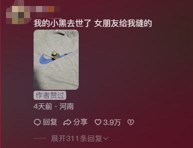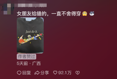 不少人晒出了家人为自己亲手缝制的手工艺品。视频发出后,Nike官方也在评论区留言称,“缝得真棒,妈妈的爱是我们勇敢去做的底气,我们为你的妈妈准备了一份礼物,请私信联系我们,just do it。”