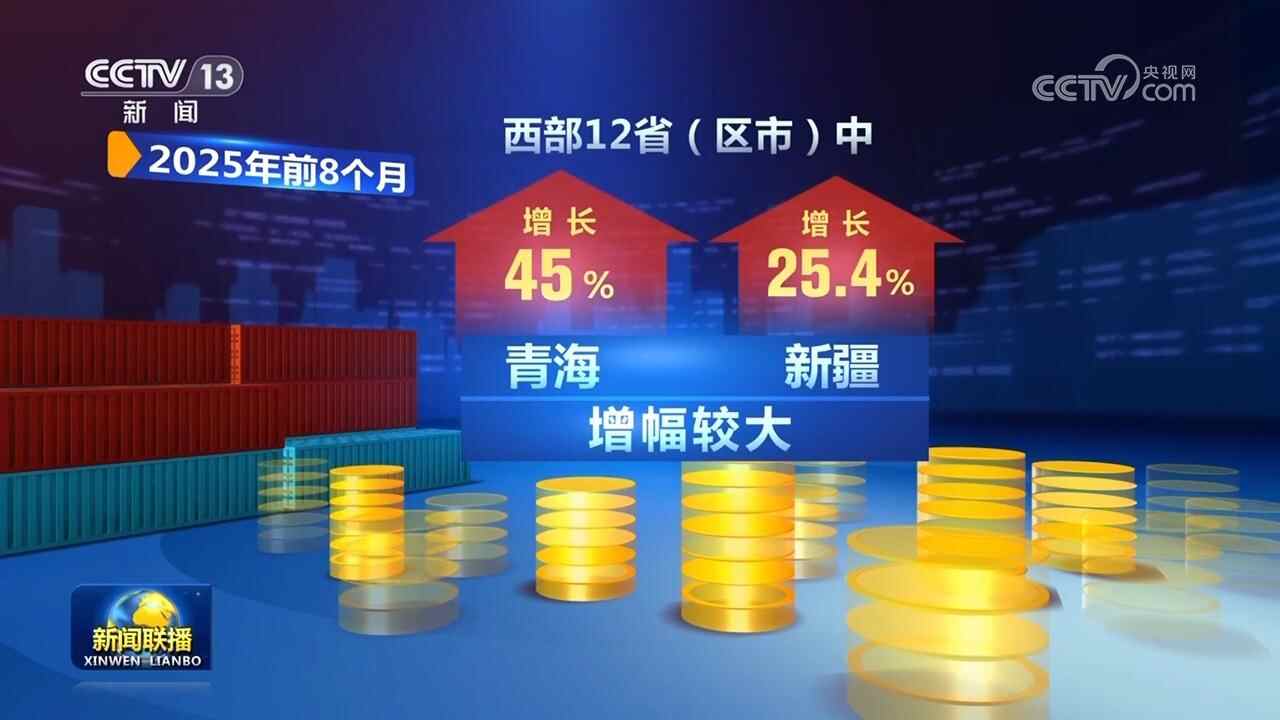 西部12省区市中,青海、新疆增幅较大,分别增长45%、25.4%。