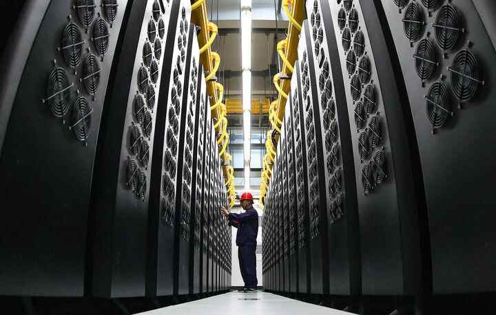 工作人员在贵安超算中心数据机房内工作(2024年8月29日摄)。新华社记者 刘续 摄
