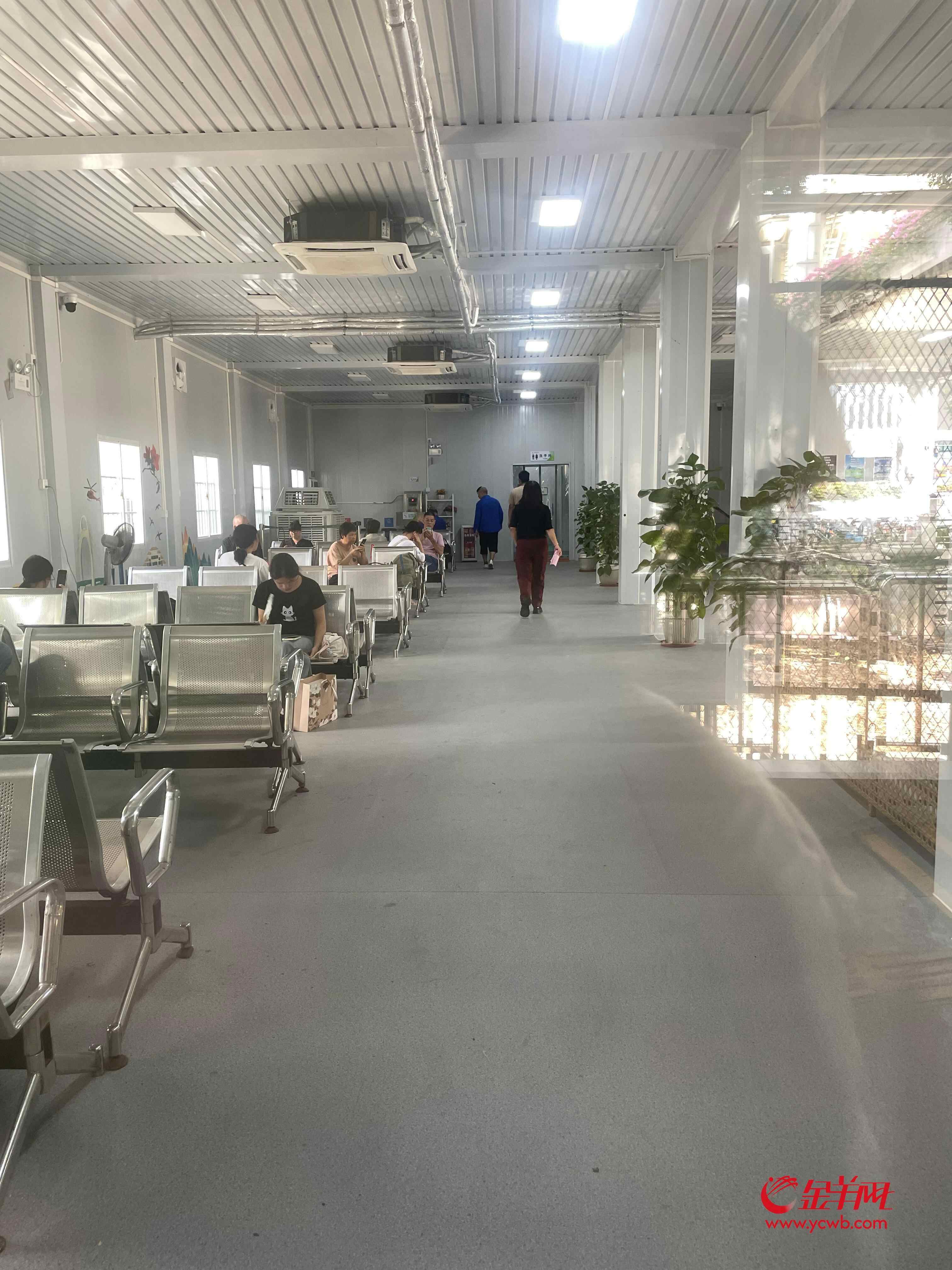 记者通过板房的窗户看到,候车厅内设置了洗手间、热水机、座椅,安装了空调,摆放了绿植等,座位、人行通道的间隔相对较宽。