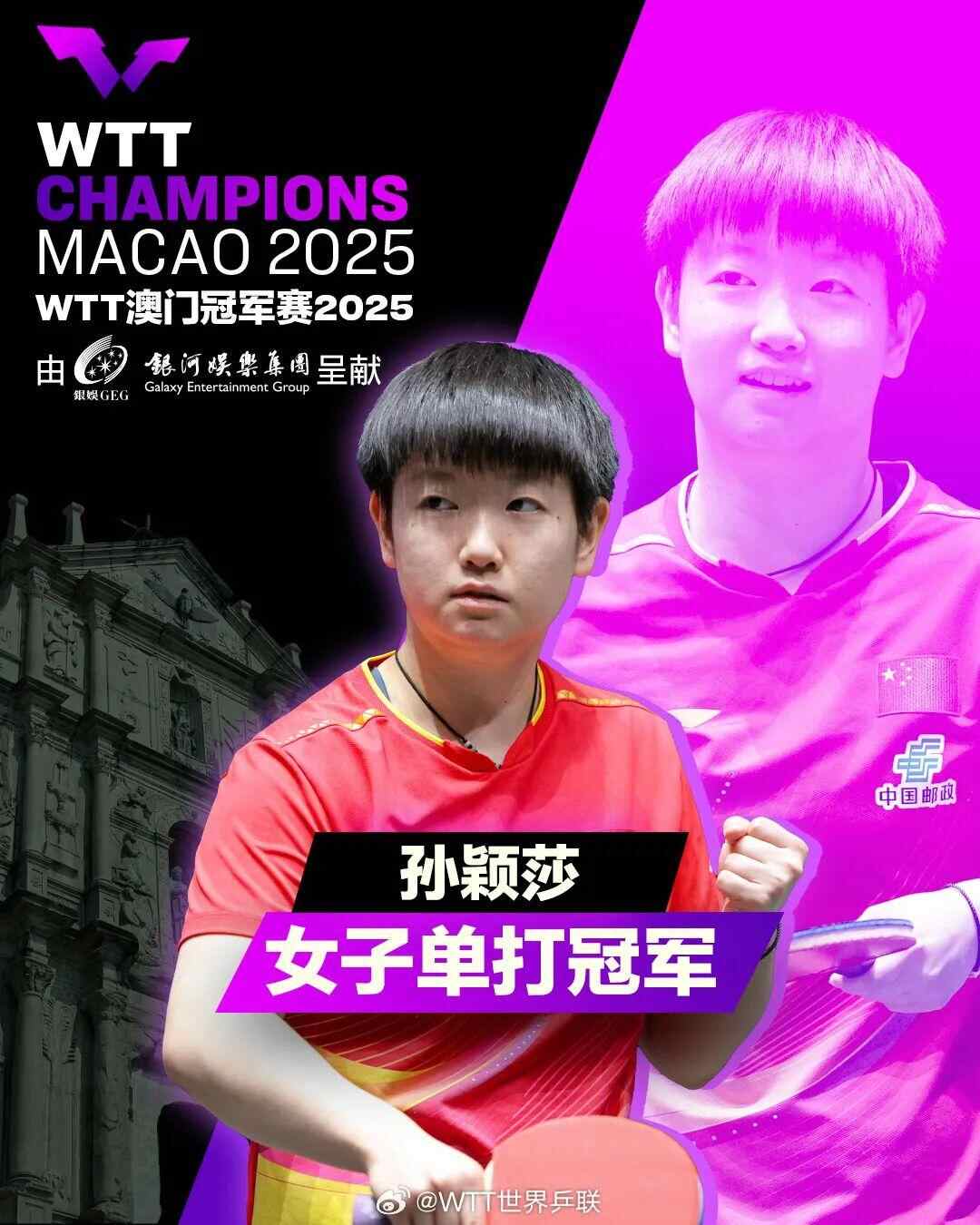赛季单打第6冠!孙颖莎获WTT澳门冠军赛女单冠军