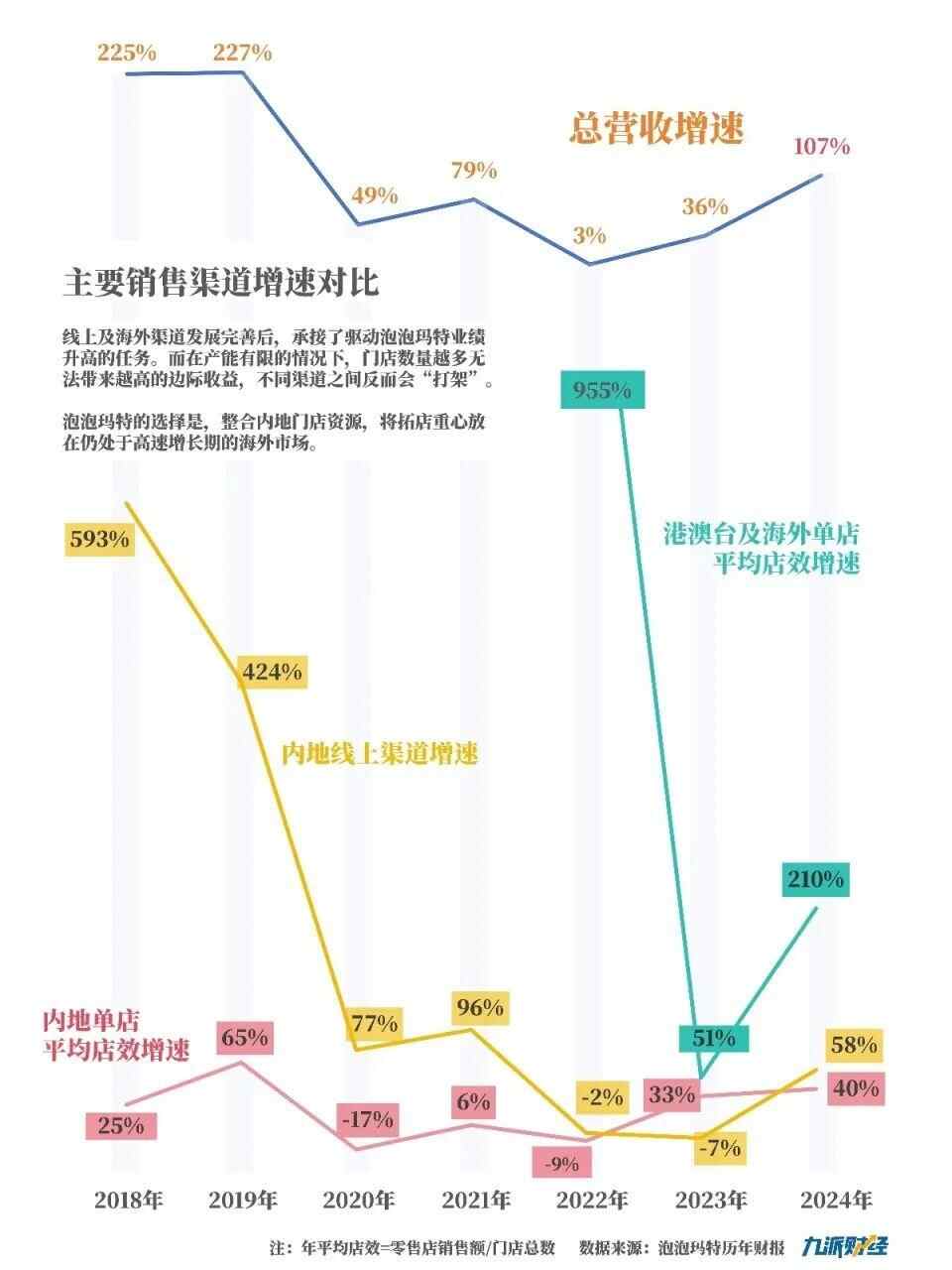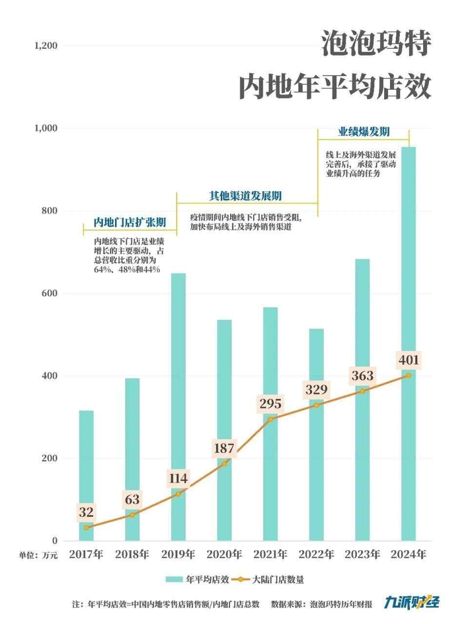 泡泡玛特的选择是,整合内地门店资源,将拓店重心放在仍处于高速增长期的海外市场。泡泡玛特中国业务总裁褚音在2025年初的业绩会上曾表态,公司通过线上线下融合(2024年抽盒机营收同比增长52.7%、直播营收同比增长112.2%)提升单店产出,“用一家店解决的事绝不开十家店”。