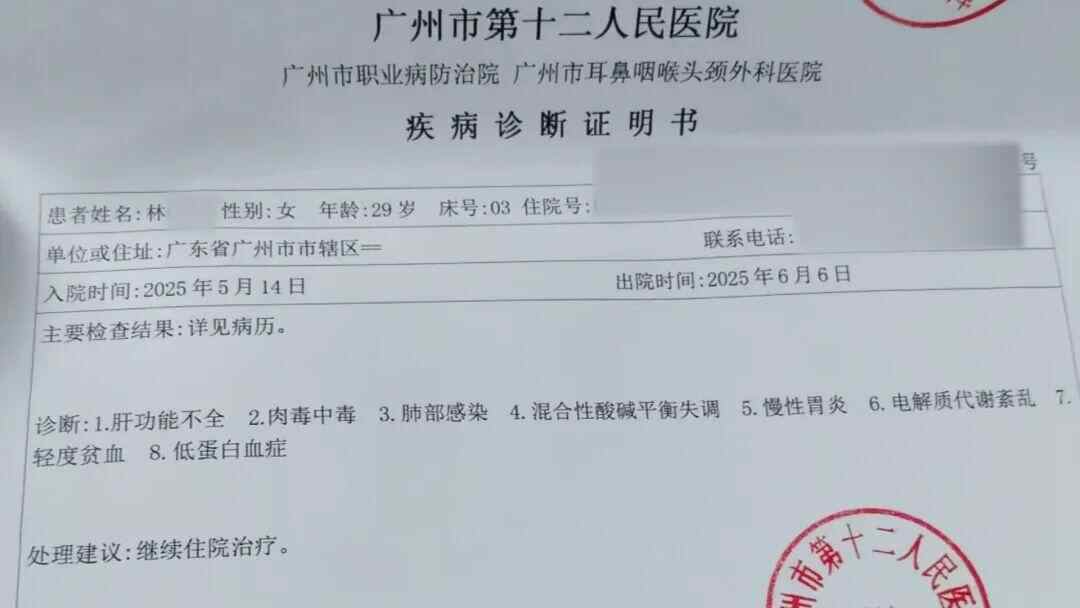 由于该院无肉毒抗毒素血清,5月14日,晓云转至广州市第十二人民医院,确诊为“肉毒中毒”。