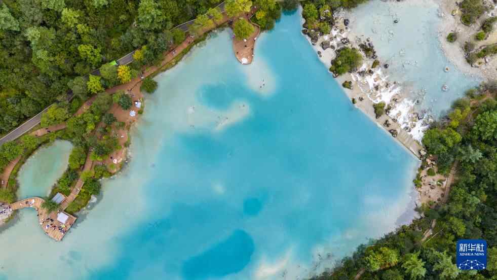 9月8日,游客在蓝月谷游玩(无人机照片)。