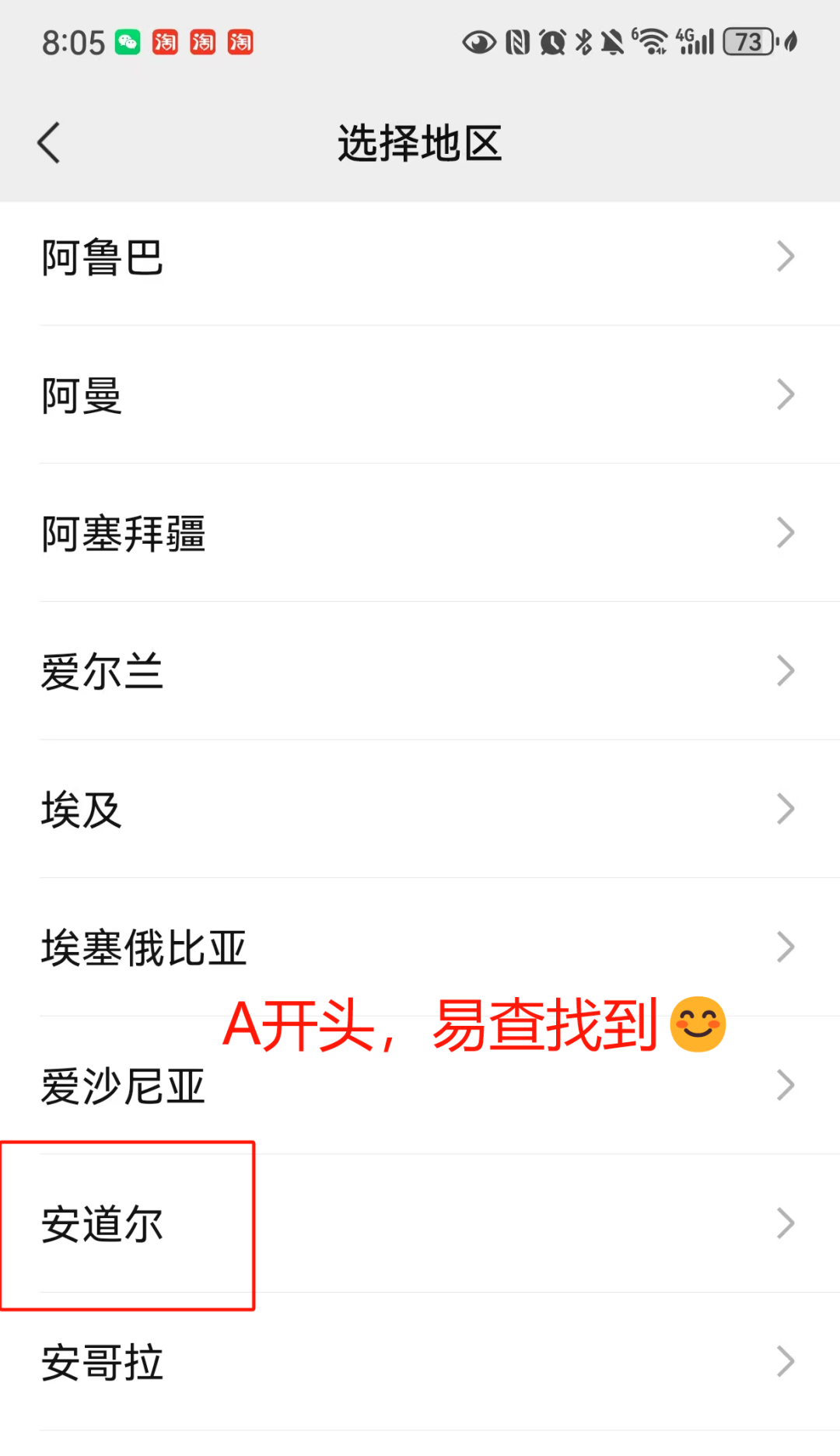 第一个原因就跟微信设置地区的顺序有关。早些时候注册微信,选择归属地的列表是按照中文拼音排序的,安道尔由于其中的“A”和“D”都靠前,所以排在了地区中的第一位。