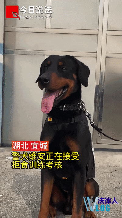 湖北宜城的警犬“维安”,训练人员多番“怼脸”,向它喂食火腿肠,但“维安”不为所动,拒绝食用投喂的食物,成功通过拒食训练考核!