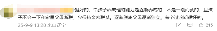 有网友认为父母用心良苦,有网友认为一次性给有助养成规划习惯,也有不少网友提出反对,认为“每天联系”显得过于紧张。