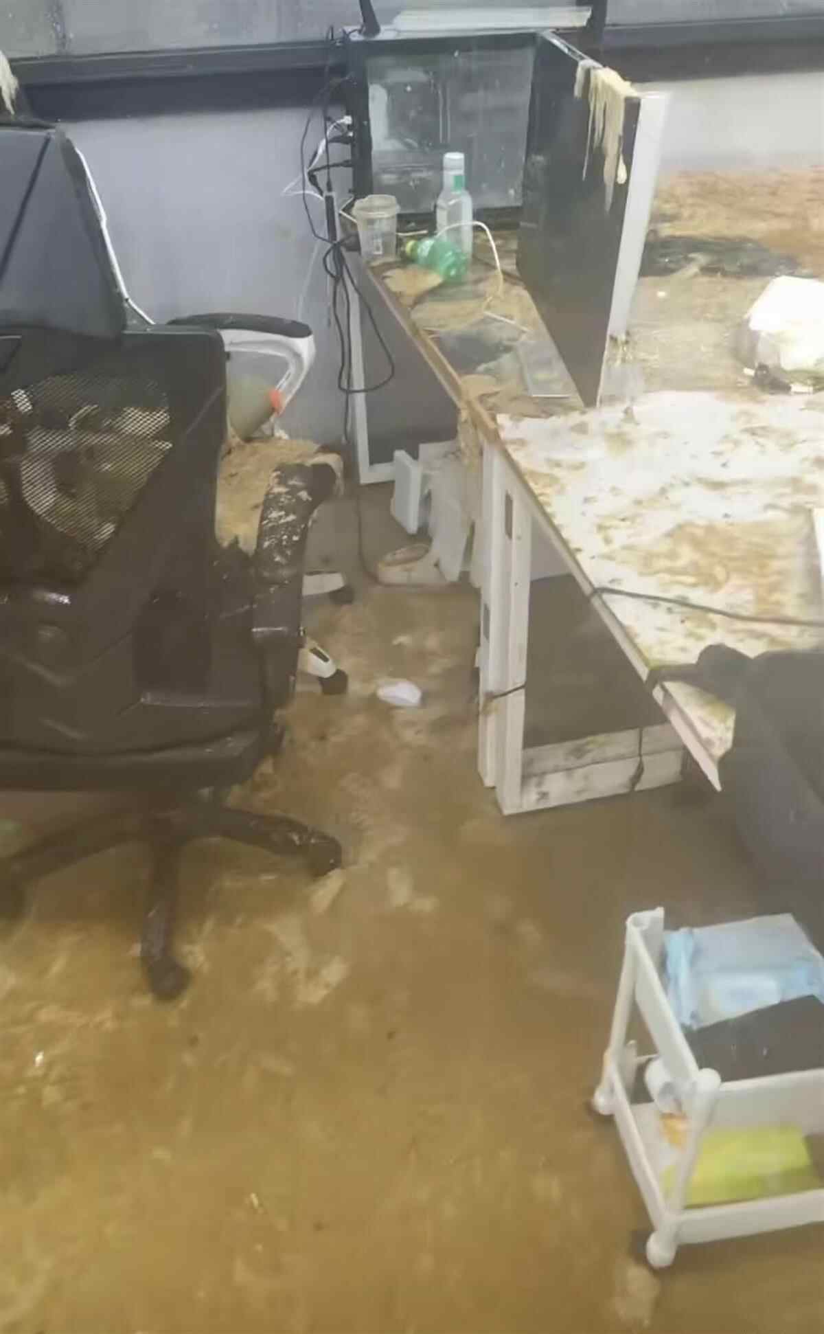 在目击学生发布的视频中可以看到,在一间教室中,桌椅、电脑和地板都是污水和污物,一名女生赤脚站在地上情绪崩溃,一边哭泣一边说:“我不该选这个座位的,现在怎么办?”
