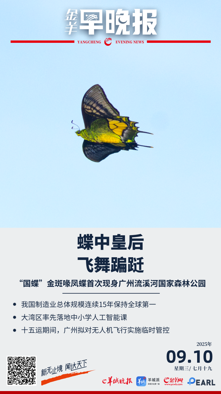 【金羊早晚报】首次!“国蝶”金斑喙凤蝶现身广州流溪河国家森林公园