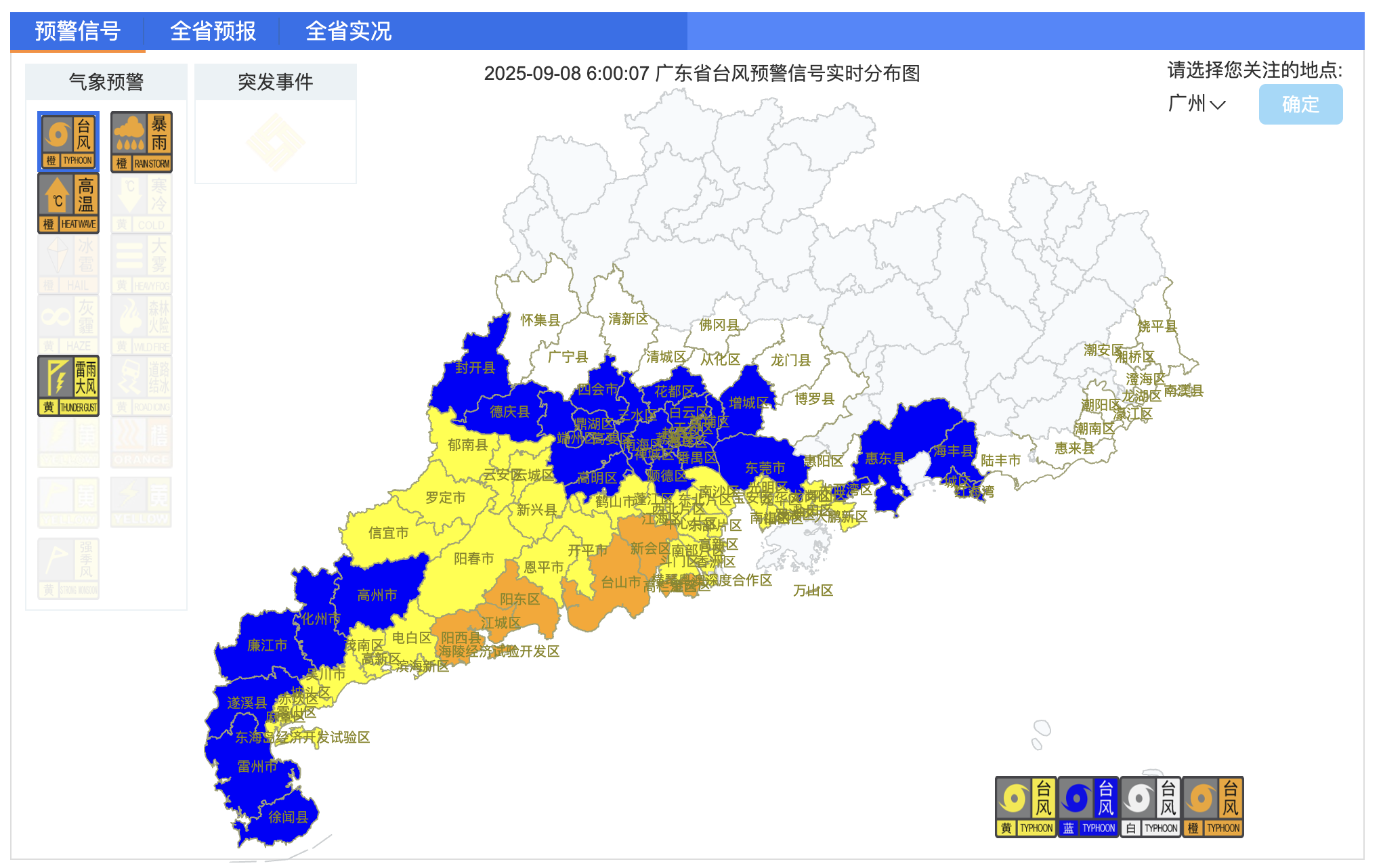 (以上信息更新至9月8日6时,信息来源为广东气象网及广东气象“缤纷微天气”微信小程序)