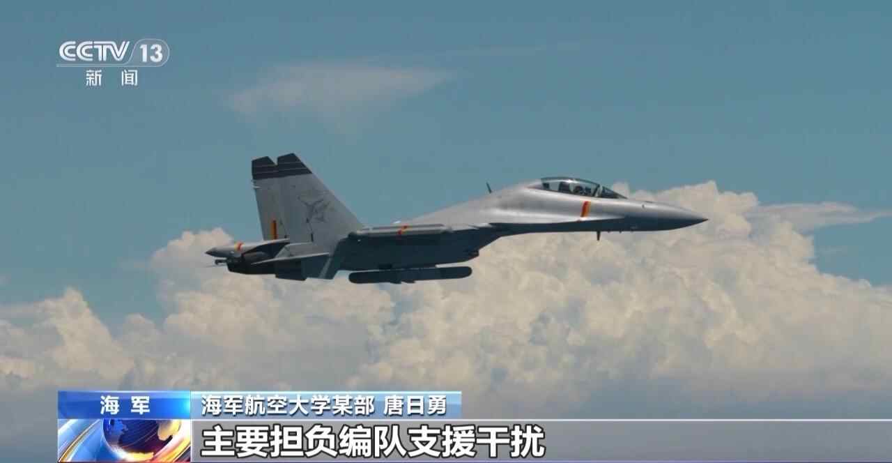 总台记者 欧阳逸:我现在身旁这架涂装为海军灰的歼-15DH电子战飞机,正在进行起飞前的最后检查工作,即将与其他舰载机展开编队飞行训练。大家可以看到歼-15电子战飞机,它的座舱是前后双座舱,此次舰载机家族的全新亮相,体现了未来作战理念和作战样式的多元化,将大幅提高海军舰载航空兵的战斗力。