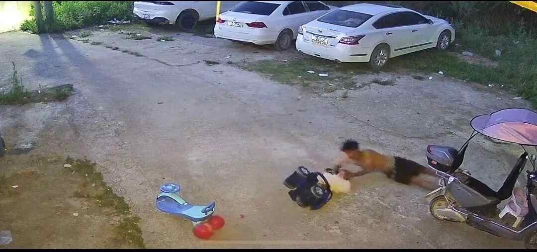 视频显示,一名小女孩站在玩具车内,突然玩具车失去平衡,小女孩跟着玩具车一起倒向地面。眼看孩子后脑勺就要着地,站在不远处的一名男子连忙向小女孩的位置冲去,冲刺过程中男子不慎摔倒,但倒地时他仍及时赶到,用手托住了小女孩的后脑勺。据了解,视频中的男子是小女孩的父亲。