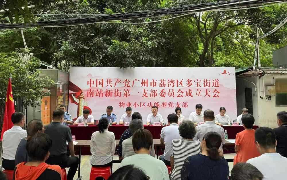 9月7日,中共广州市荔湾区多宝街道南站新街第一支部委员会成立,是南站新街24-34号居民小区的物业小区功能型党支部。该小区曾面临矛盾纠纷、公共区域权属不清、业委会组建难度大等问题。组建物业小区功能型党支部,是多宝街道以“党建引领”,探索“零物管”基层治理的新模式。