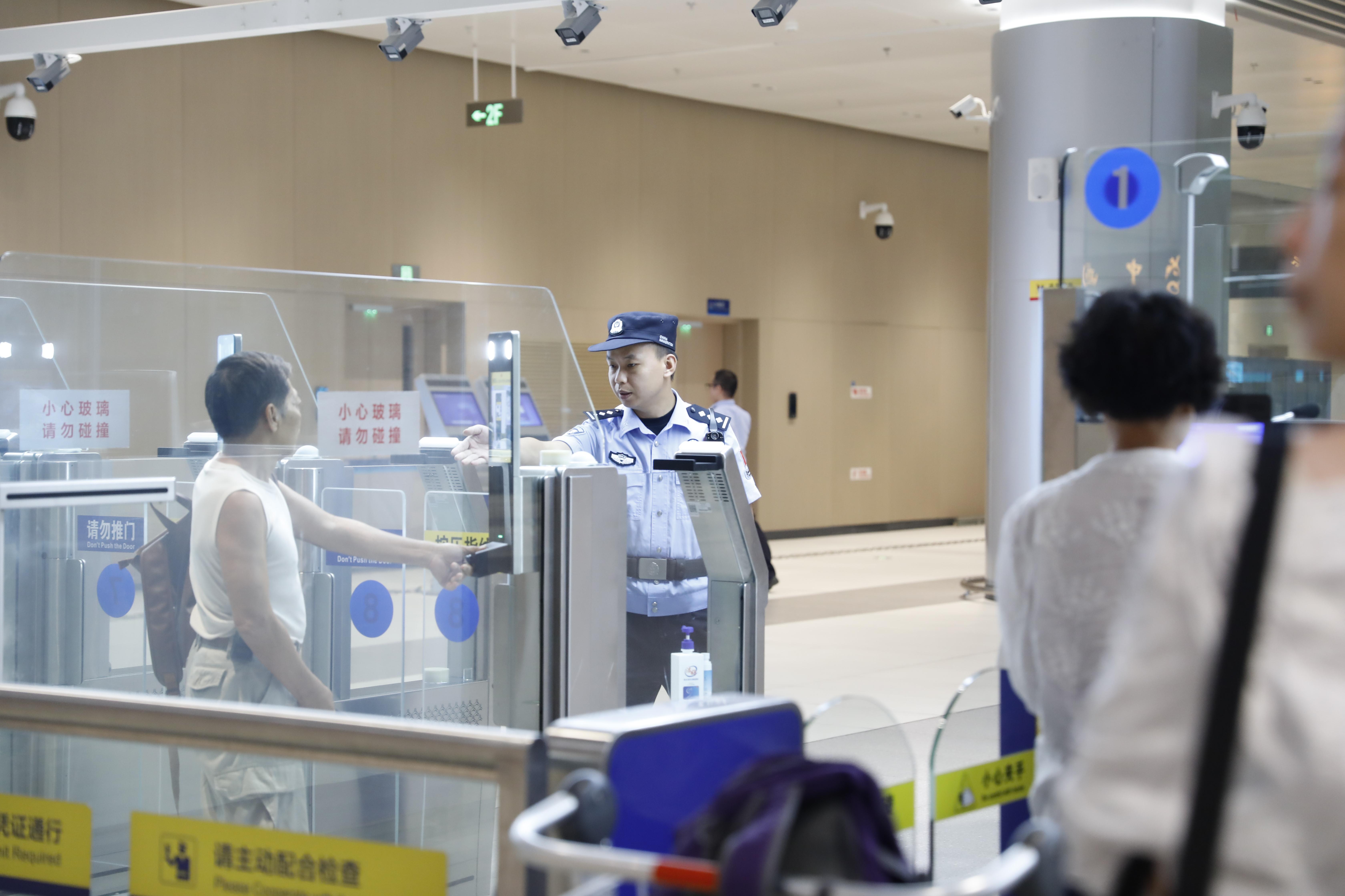 15时30分,乘坐恢复通关后首班出境航班的旅客们在边检民警的指引下,有序排队、查验证件,整个通关过程井然有序。中山边检站相关负责人表示,将持续关注天气变化和航班动态,全力保障客运口岸的安全、有序、畅通,为广大出入境旅客提供优质、高效的通关服务。