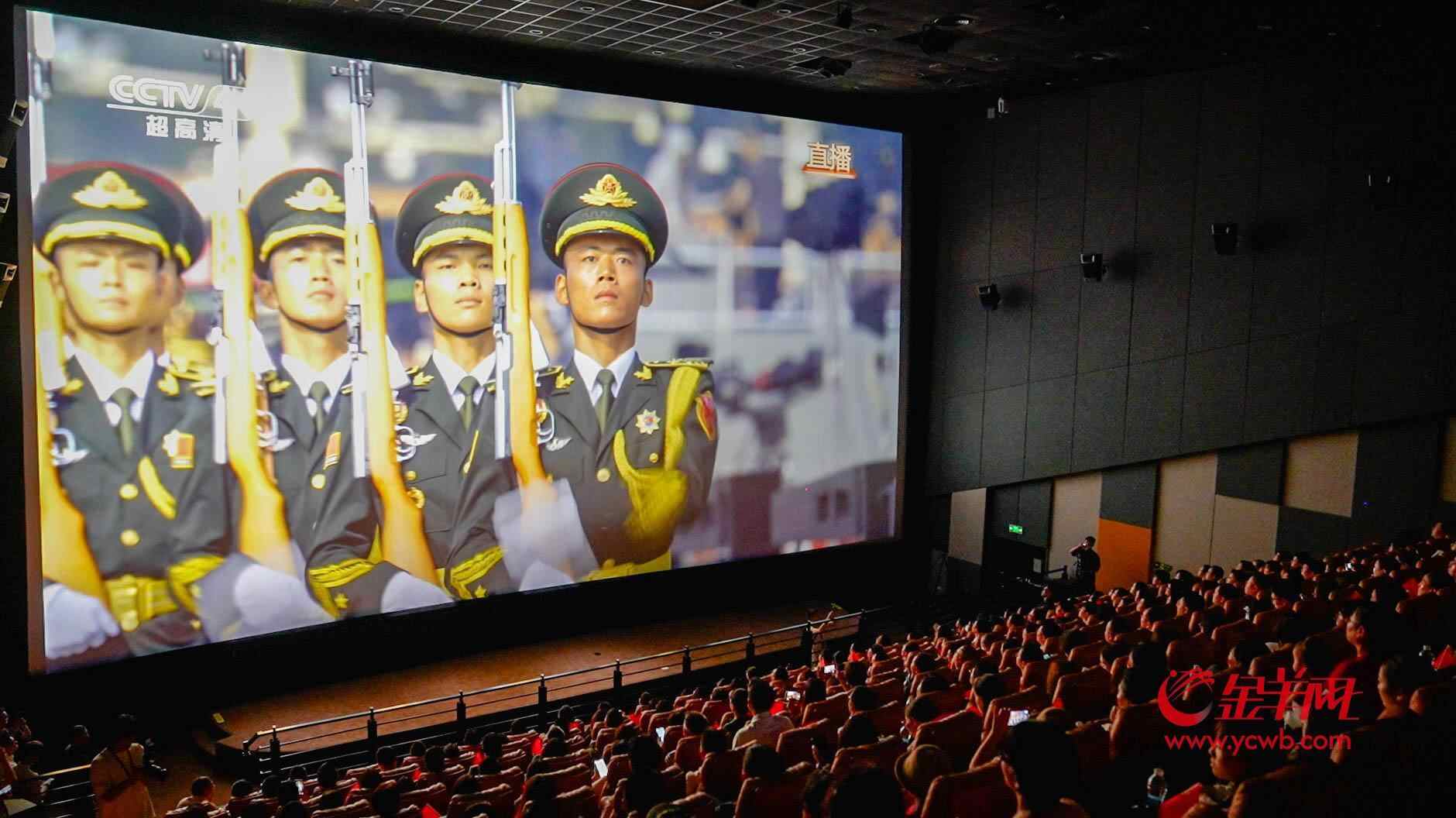 9月3日上午,“此时此刻——纪念中国人民抗日战争暨世界反法西斯战争胜利80周年大会直播进院线活动”在全省11家影城同时举行。其中,广州近600名观众幸运地感受了一把在影院银幕观看盛大阅兵仪式的震撼感。大银幕上,中国军队气势恢宏;大银幕前,各界观众心潮澎湃。在接受羊城晚报记者采访时,人们争相表示“激动”“自豪”“我们的祖国太强大了”!