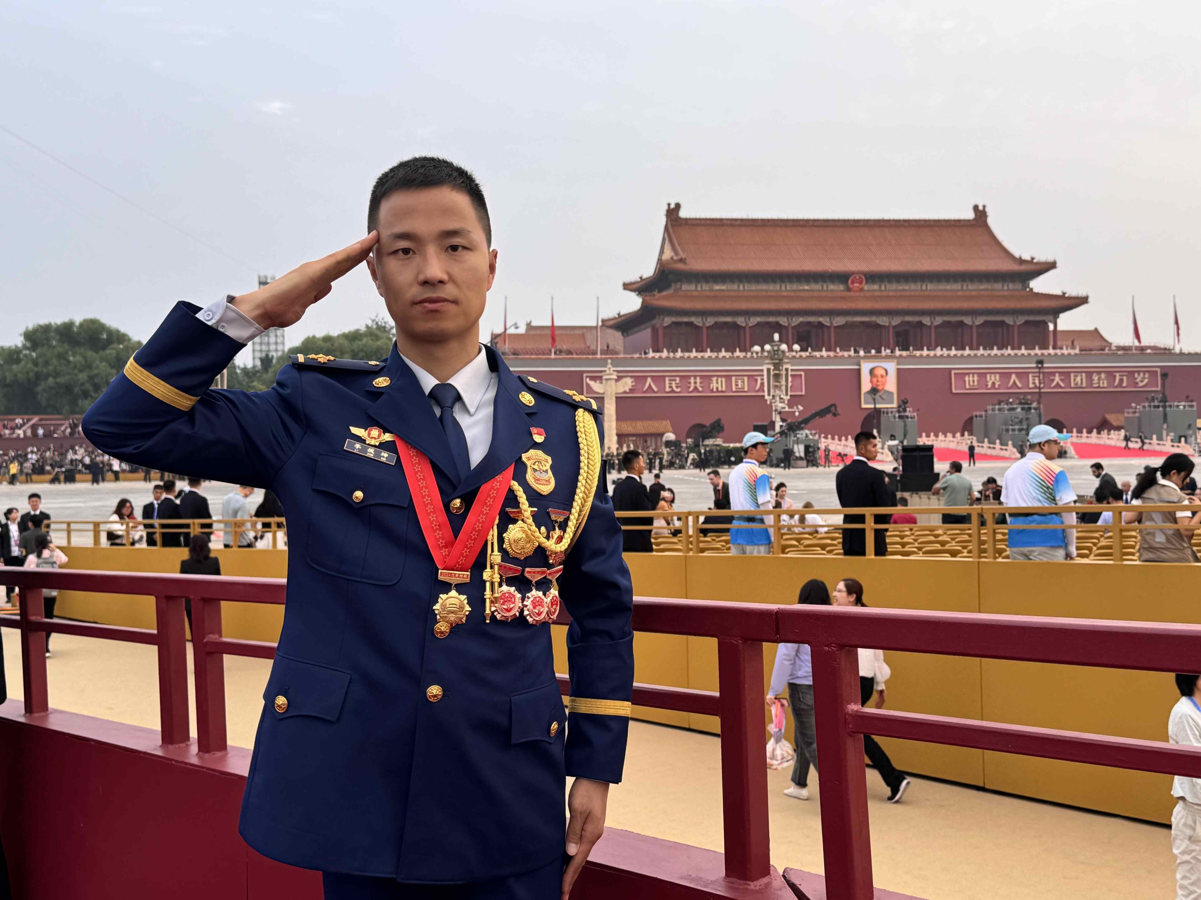 “作为一名首都消防指战员,能够以观礼嘉宾身份参与纪念中国人民抗日战争暨世界反法西斯战争胜利80周年大会,我感到无比光荣和自豪。”33岁的李战坤来自门头沟区消防救援支队,现任潭柘寺消防救援站指导员。