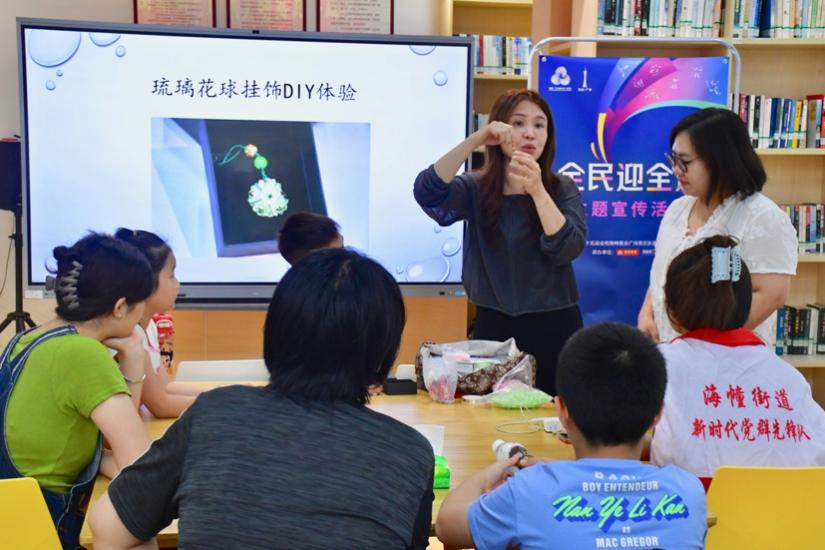 琉璃作为我国五大名器之首,历史悠久,文化底蕴深厚,琉璃烧制技艺已被列入国家级非物质文化遗产代表性项目名录。本次研学活动还开展了非遗琉璃花球制作体验,现场从古代的古琉璃制品到现代创新设计,老师带大家深入了解琉璃的“前世今生”。