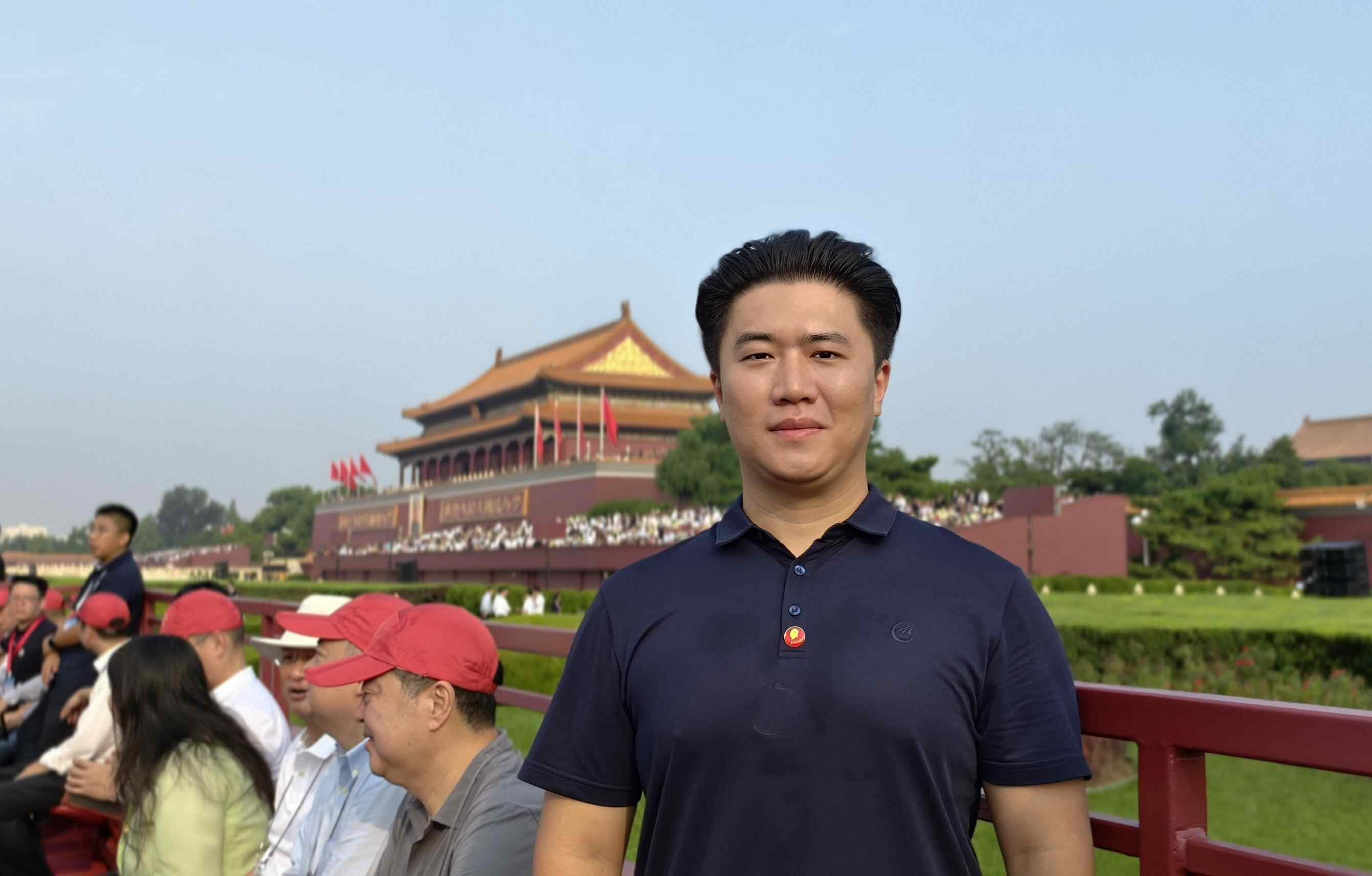 当阅兵仪式正在进行中,澳门爱国教育青年协会主席黄家伦就在现场早早向记者传递了观礼的感受:“心情特别激动!看到了很多厉害的武器装备,希望国家越来越富强!”为纪念抗战胜利80周年,黄家伦特地创作了原创歌曲《捍卫》,正在广泛传唱。其中一段歌词:“谁再为名利追逐千百趟,黄金铺满身不如半滴汗,我定然去闯,血汗流干,为的不再割让四方!”现场观礼阅兵之后,黄家伦有了更深刻的领会:“我们国家强大,中国人民强起来,不会再割让四方了!我们定当好好保护自己的祖国和家园!”