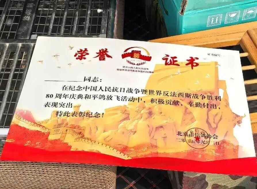 另外,多位鸽友也已经拿到了北京市信鸽协会颁发的参与当天活动的荣誉证书,有鸽友表示,鸽子回家后会给它们洗澡,然后喂点好吃的慰劳下。