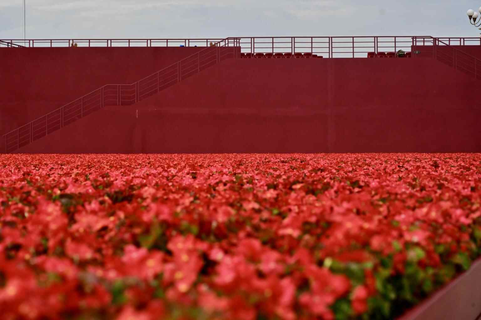 张先哲坦言,所有花坛的布置工作中,环绕观礼台四周的长城纹花坛的难度最大,因为它“既非常规整,又很不规则”。规整是因为纹路统一,而不规则是因为横向纹路和纵向纹路的宽窄各不相同。“为了把设计图上平面的长城纹完美呈现到大会立体的空间里,工作人员对着设计图纸反复琢磨,又与设计团队沟通进行多次调整,让无规律的纹路呈现有规律的变化。此外,从运输到拼组花坛的过程我们也进行了细致研究。这都是为了能让花坛造型更好地展现、花卉状态更好地呈现。”