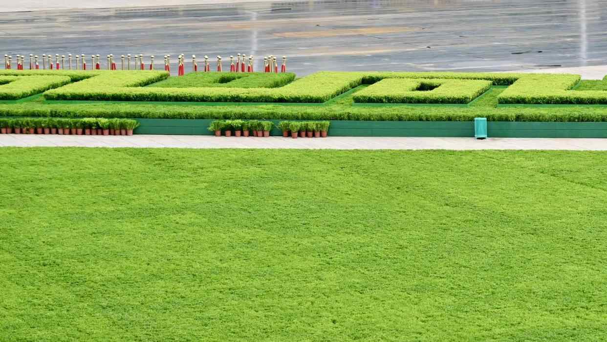 9月3日,九三纪念活动在天安门广场隆重举行,在年号台、观礼台的四周,有成片的花坛引人注目:年号台底座下金灿灿的孔雀草、大片盛放的红色四季秋海棠、绿草和金叶萼距花拼出的长城纹……红色、黄色、绿色的花坛与现场布置完美呼应,烘托大会的庄严庄重。
