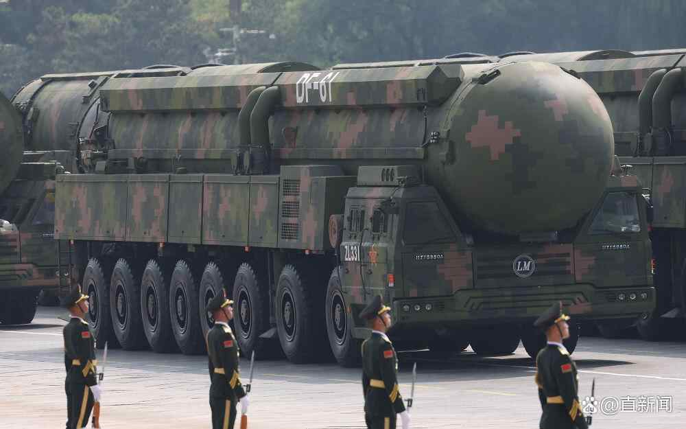 受阅的“惊雷-1”空基远程导弹、“巨浪-3”潜射洲际导弹、“东风-61”陆基洲际导弹、“东风-31”新型陆基洲际导弹,首次集中展示我军陆、海、空基“三位一体”战略核力量。