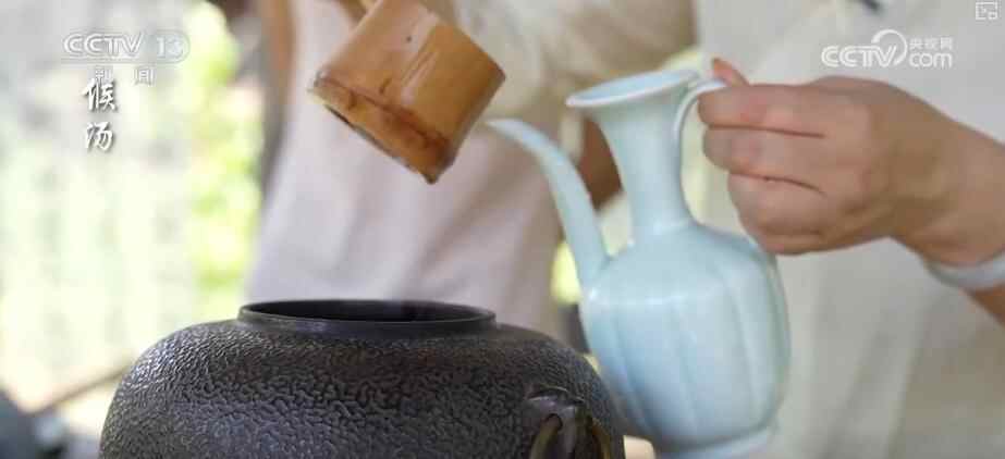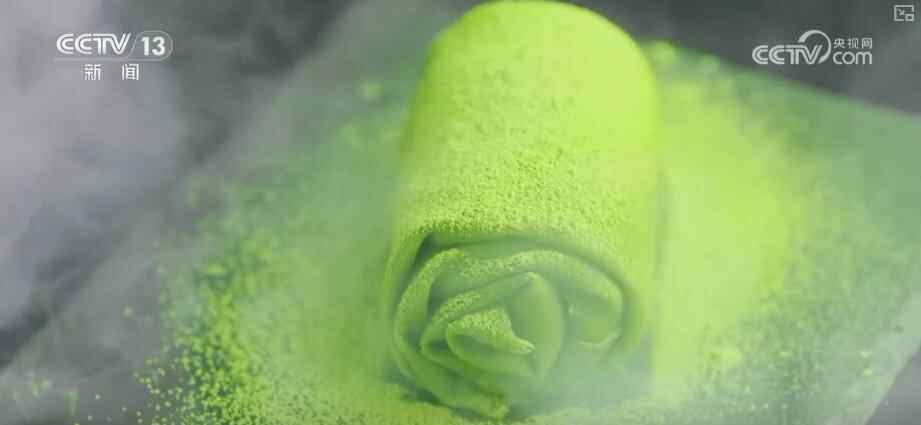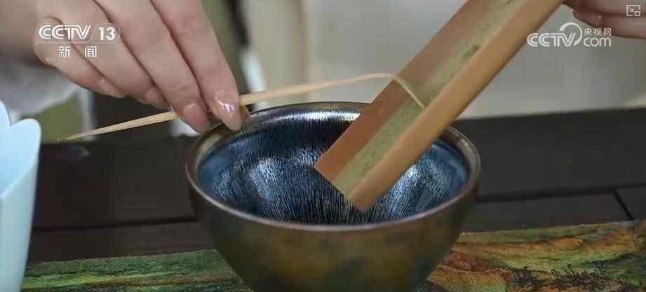 在抹茶生产的过程中,食品安全至关重要。记者穿上防护服,佩戴好手套和口罩以后才得以进入磨粉车间。这是一条抹茶的生产线,被打碎的碾茶就经过上方投放到球磨机以后,被打磨出了非常细腻的抹茶粉,随后通过管道运送到下一个生产环节。来自全省的所有碾茶都会汇聚到这家工厂,每天有超10吨的精制抹茶在这里被生产出来,作为“中国新特产”发往全球的50多个国家和地区。 和抹茶一起出海的,还有中华民族上千年的茶文化。 一“抹”越千年:宋式点茶“点”活千年古韵