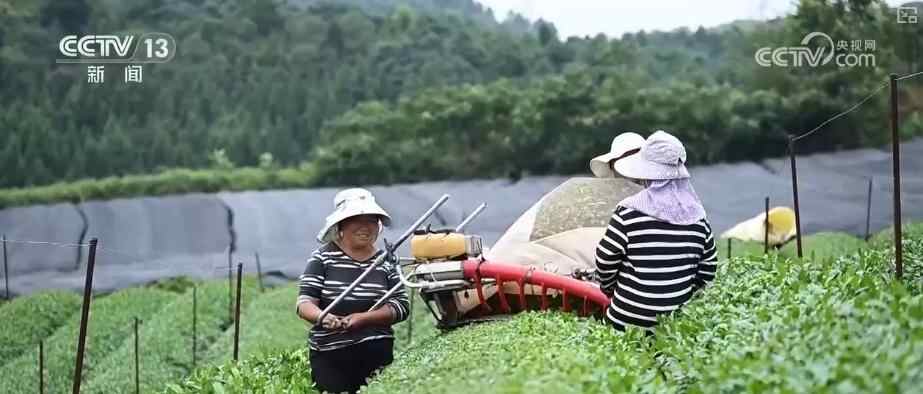 这里是贵州省黔南州瓮安县的一片1000多亩的茶园,海拔大约是1400多米。从空中俯瞰,一座座茶山就如同绿色的波涛连绵起伏。趁着这两天降雨停止,茶场的工人们正操作采茶机,加紧采收2025年的第三季茶叶,而这些茶叶就是制作抹茶的原材料。 遮阴处理作用大 茶叶鲜绿口味佳