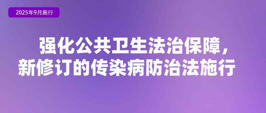 新修订的《中华人民共和国传染病防治法》自2025年9月1日起施行。其根据传染病危害程度、经济社会影响等因素,进一步明确了甲、乙、丙三类传染病的划分标准。强调依法开展个人信息处理活动,确保个人信息安全,不得过度收集信息,相关信息不得用于疫情防控以外的目的。对未依法履行个人信息保护义务或泄露个人隐私、个人信息的,依法给予相应处罚。完善了传染病疫情应急处置制度,提高了政府应急处置能力。该法规定,疫情应对处置遵循属地管理原则。对突发原因不明的传染病、新发传染病,县级以上地方人民政府可以预先采取甲类传染病防控措施,同时向上一级人民政府报告;接到报告的上级人民政府认为预先采取的防控措施不适当的,应当立即调整或者撤销。