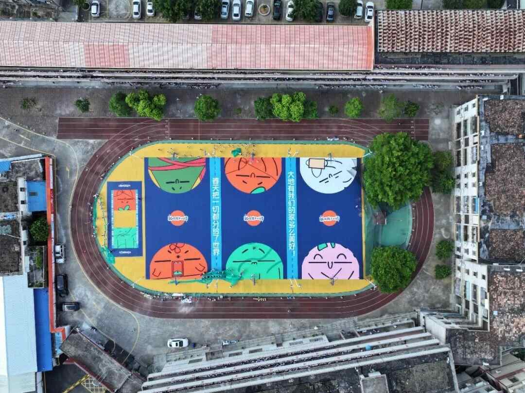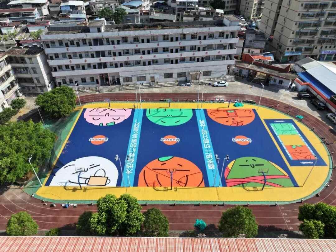 3.极致的匠心与协作: 面对落地实现的困难,我们依靠的是翁源县委宣传部的高度重视、鼎力支持以及翁城镇中心小学的全力配合。从设计到操场绘制落地的每一个细节,我们都与施工方反复沟通、现场督战,确保最终效果与设计图纸高度一致,施工工人们的日夜劳作保证了高品质的呈现。