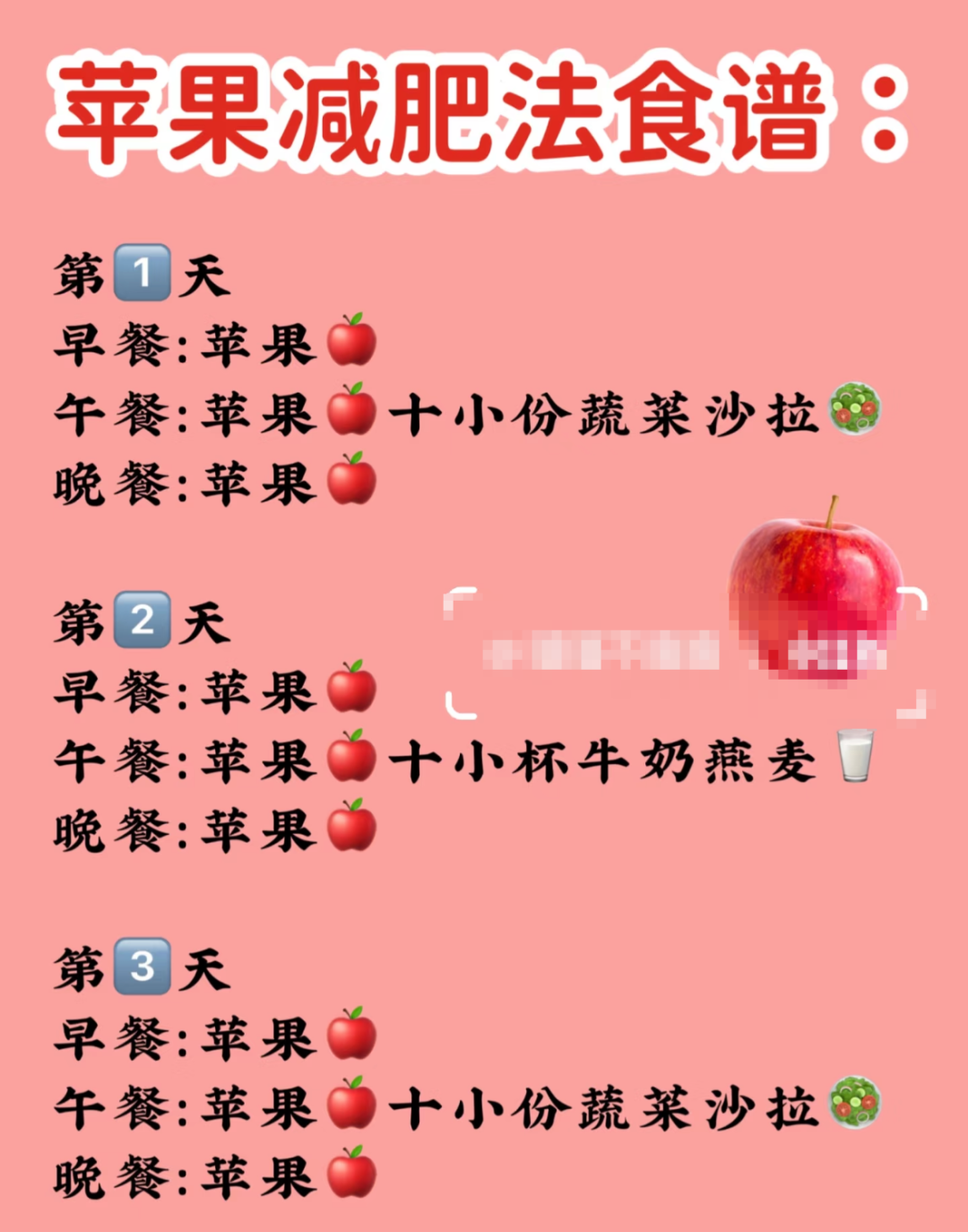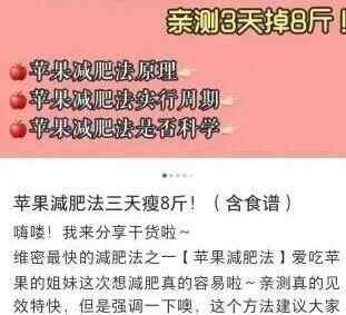 先说结论:网上用“三天苹果减肥法”一周瘦8~10斤,可能是真的,但不建议大家尝试。