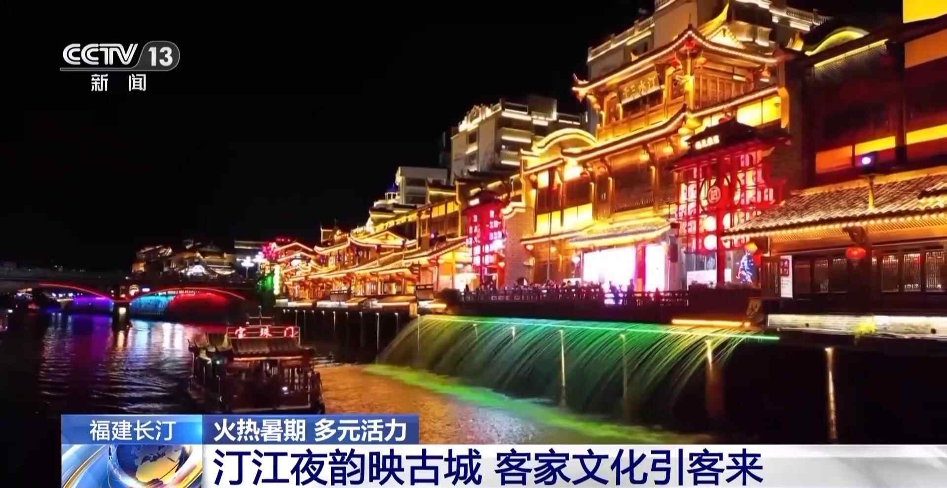 在福建省长汀县,夜幕降临时,汀江两岸灯火璀璨,汀州古城热闹非凡。这个暑期,持续更新的文旅业态,为市民游客带来耳目一新的游玩体验。