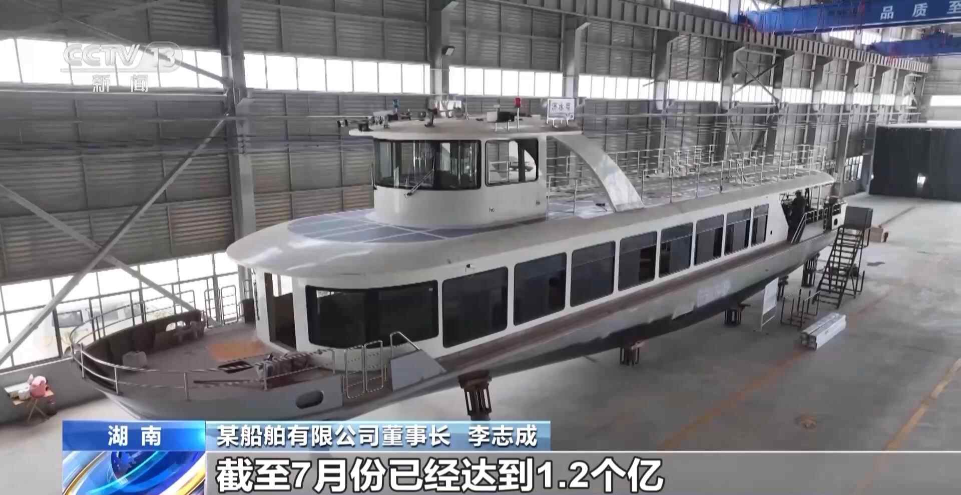 湖南某船舶有限公司董事长 李志成:我们公司的订单总量截至7月份已经达到1.2个亿,其中用于观光旅游的船艇占比90%,新能源船艇订单数量达到了80%以上。