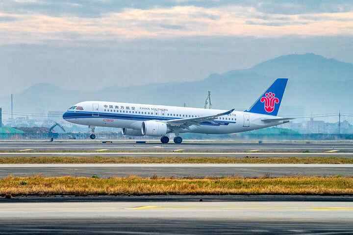 一架南航C919国产大飞机在广州白云国际机场起飞(2025年1月14日摄)。新华社记者 王瑞平 摄
