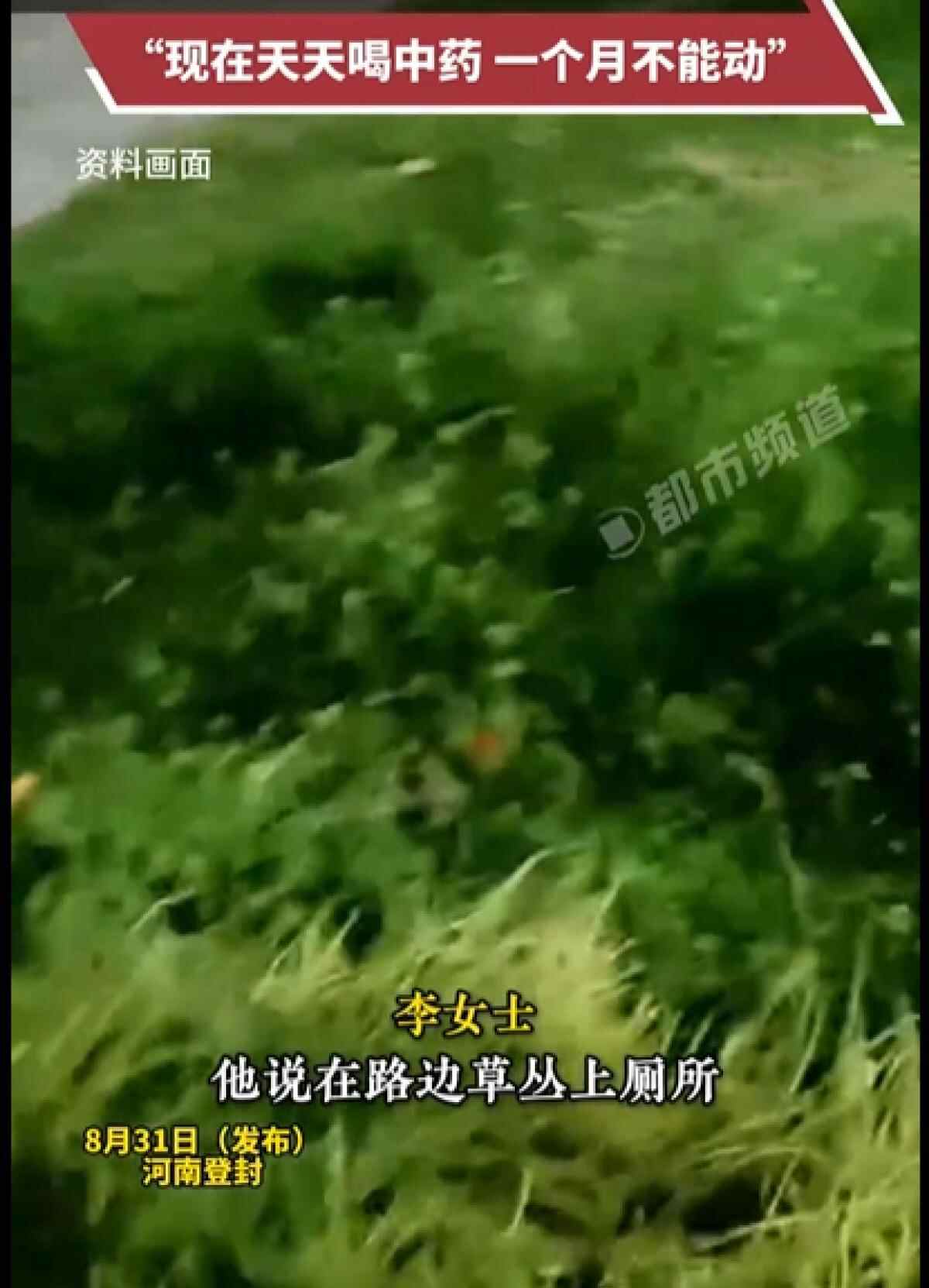 河南一男子到路边草丛方便