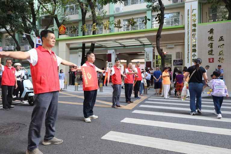 随着9月1日全市中小学秋季学期开学,素社街国防教育进校园宣讲活动也于当天正式启动,首站选在具有50多年办学历史的前进路小学。一大早,素社街结合该校门口交通路况复杂的实际情况,组织14名红棉老兵开展“护航行动”,老兵们六点半就已集合准备完毕,七点钟全员到岗,迅速投入到紧张有序的工作中,协助交警维持学校周边秩序,积极引导行人快速通行,有效降低了人流通行压力,以实际行动为学生保驾护航。