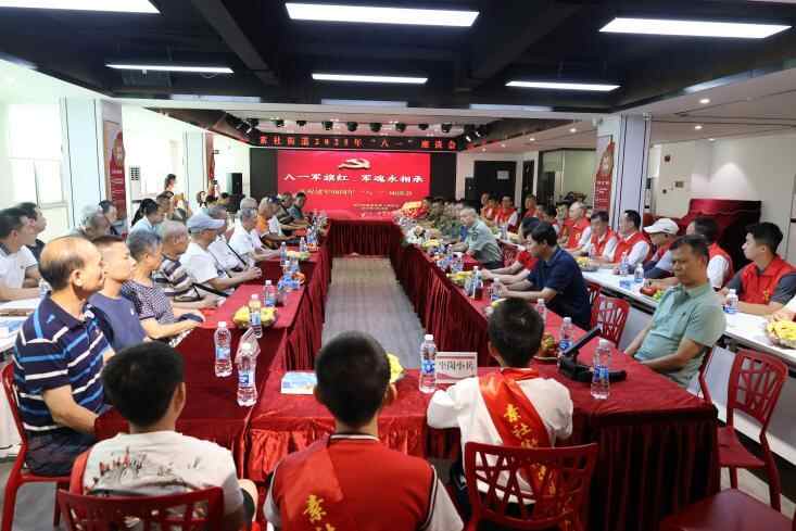 为弘扬“拥军优属、拥政爱民”光荣传统,7月28日,素社街举行了“八一军旗红,军魂永相承”庆祝建军98周年座谈会,邀请功勋老兵、军创企业代表、新兵家属代表、在职退役军人、红棉老兵、干休所指战员、社区老兵代表等80余人参加。在这次活动中,参会的“坐岗小兵”代表还向功勋老兵、抗美援朝老兵献花,并送上“八一”慰问信。素社街道党工委书记曾庆泉表示,素社街凝聚退役老兵“磅礴力量”,首创“红棉老兵坐岗制”,实行“三个一”管理模式,聚焦来访接待、政策咨询、法律援助、心理疏导、走访慰问、优抚帮扶等六方面重点,陆续推出“巾帼女兵班”“小兵坐岗”“老兵护航”“老兵讲堂”“老兵义诊”“老兵热线”“老兵家书”“老兵帮帮团”(心理共育)等“菜单式”服务,推动退役军人服务工作走出一条成效突出的新路径。