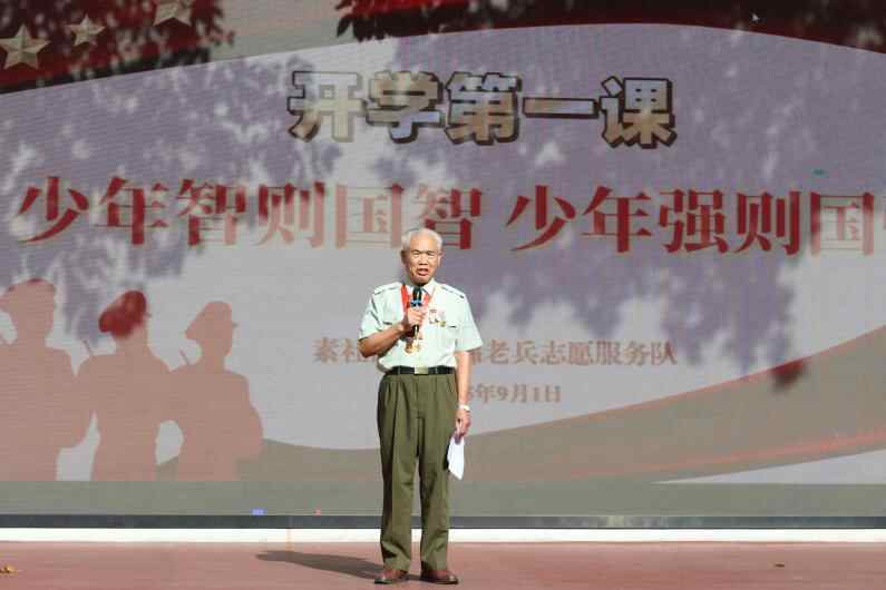 开学典礼上,素社街还邀请了75岁的老英雄潘瑞宁为同学们讲授“开学第一课”。潘瑞宁于1968年入伍,在上世纪七八十年代的对敌作战中,出色地完成了上级交给的战斗任务,时任副连长的他荣立战时一等功。潘瑞宁以自己的亲身经历告诫同学们和平年代的来之不易,激励大家努力学习,未来用科学文化知识建设伟大的祖国。