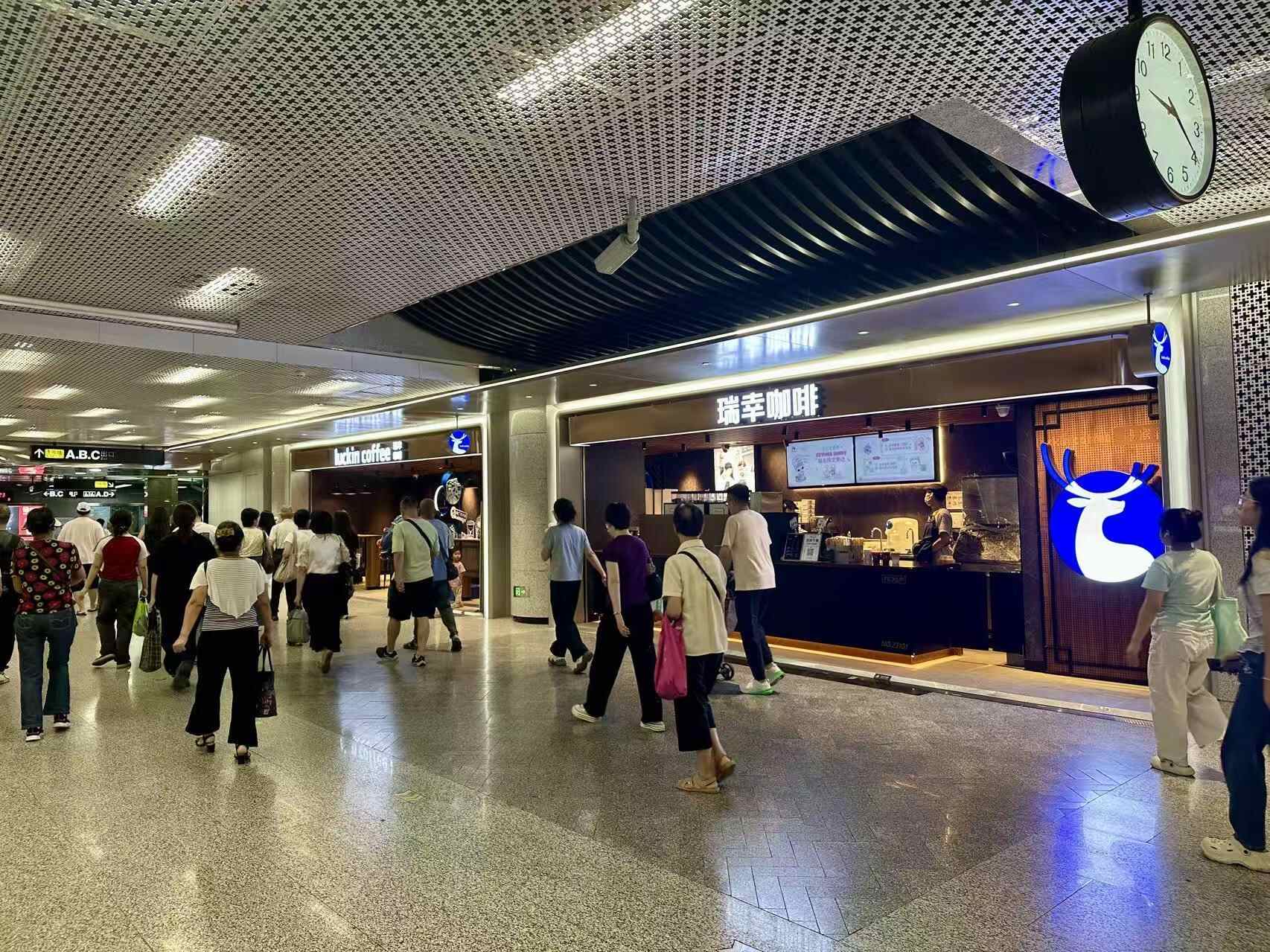 在陈家祠站1号线换乘8号线的通道内,十余个品牌共同打造的精品商业区已投入运营。其中,瑞幸咖啡首次进驻广州地铁车站商业,针对通勤族“分秒必争”的出行特点,特别搭配智能取餐柜与移动点单系统,实现“30秒快速取餐”,精准匹配地铁出行节奏。无需额外绕路、无需长时间等待,市民在进出站或换乘间隙,就能轻松解决早餐一杯咖啡的需求,有效缓解早高峰“时间焦虑”,让通勤流程更顺畅。